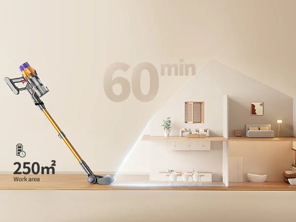 The Vacuum Cleaner features an extended battery life that allows for uninterrupted cleaning sessions. Depending on the power setting, you can expect several hours of cleaning time on a full charge, in powermode up to 30 minutes.