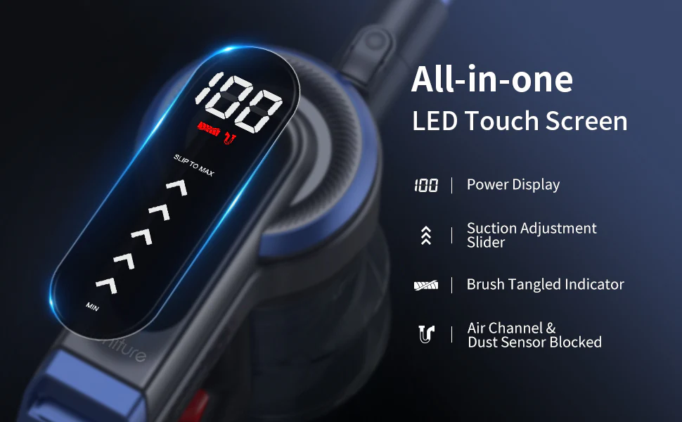 S12 cordless vacuum featuring a sleek LED screen. This intuitive display provides real-time updates on battery life, suction power, and cleaning modes, ensuring you have full control over your cleaning experience.