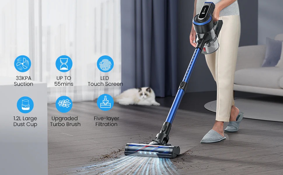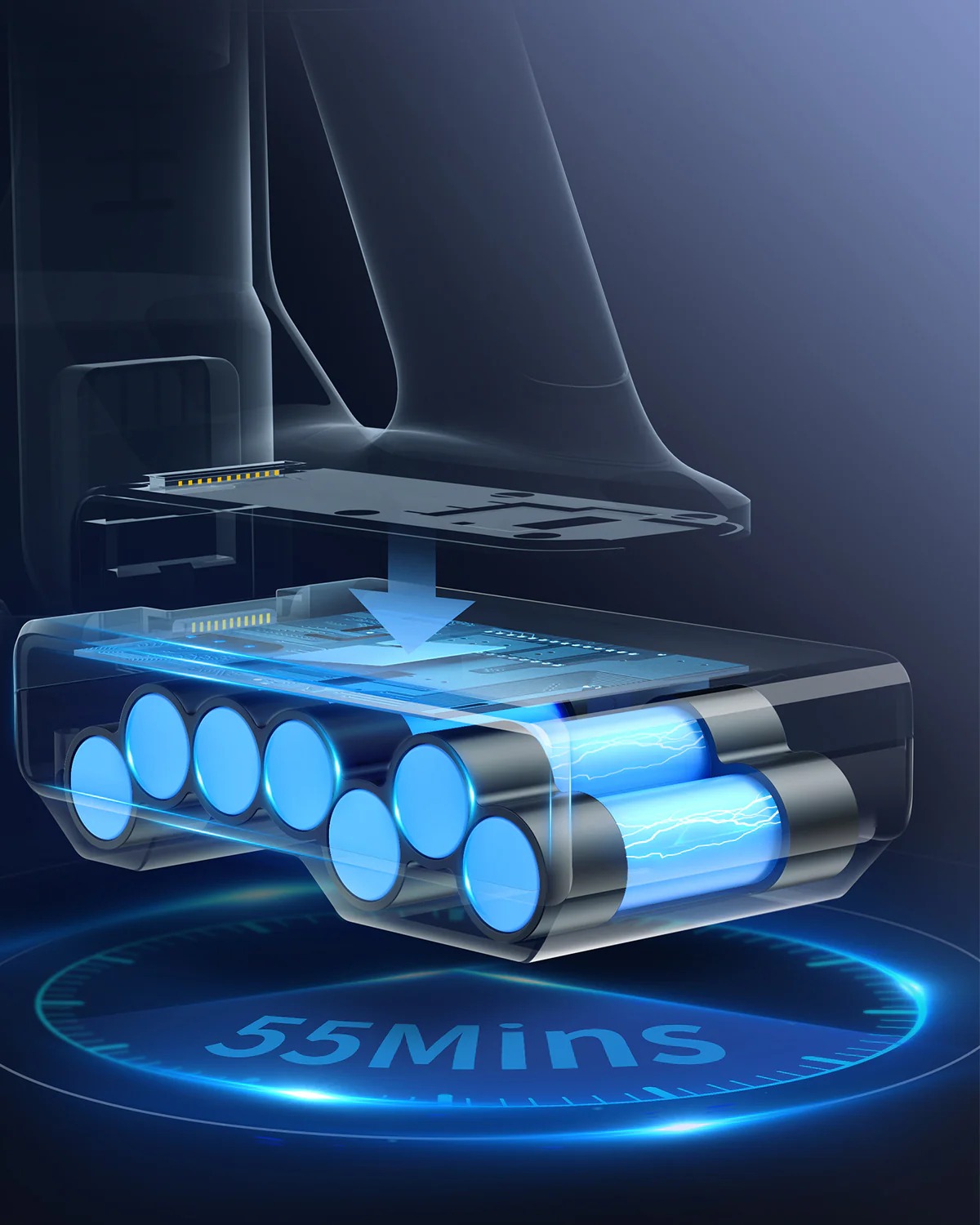 Keep your home spotless with our vacuum cleaner, offering an impressive 55 minutes of continuous runtime on a single charge.